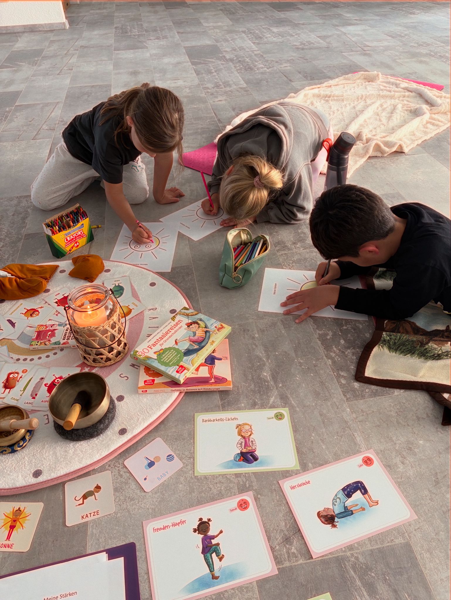 Meine beruflichen Wurzeln liegen in der Pflege: Viele Jahre habe ich als Krankenschwester gearbeitet und dabei Menschen durch belastende, sensible und entscheidende Lebensphasen begleitet. Ich konnte in dieser Zeit unglaublich viele Erfahrungen machen und mich selbst weiterentwickeln. Mein Interesse an psychologischen Themen, der Arbeit mit dem inneren Kind, Selbstreflektion, die Arbeit mit inneren Glaubensätzen und eigener Weiterentwicklung begleitet mich nun seit mehr als 10 Jahren. Meine eigenen Erfahrungen in diesen Bereichen möchte ich nun weitergeben. Ich habe eine Weiterbildung zur Trainerin für Kinderentspannung absolviert und bin darüberhinaus in Ausbildung zum Kinder/Jugend und Familiencoach, um auch das Fachwissen zu haben, euch und eure Kinder gut begleiten zu können. Aus meiner Vergangenheit bringe ich eine Weiterbildung im Bereich Palliative Care mit um Menschen in Krankheit und Trauer bestmöglich begleiten zu können.